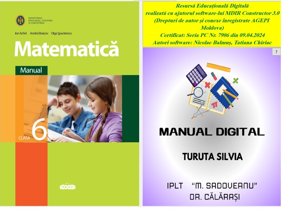 Vă invităm să utilizați manualul interactiv „Manual Digital Matematica clasa a VI-a”, autor – Turuta Silvia